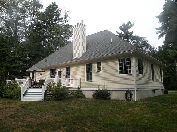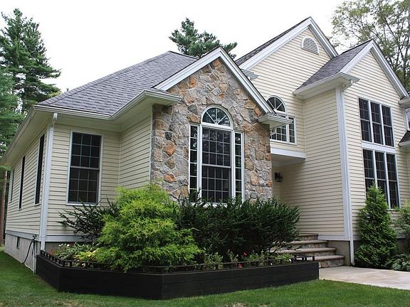This 3 bedroom 2 bath single story Contemporary is bordered by trees & stone walls .The 1.38 grounds are a mixture of gardens, manicured landscaped areas, lawn & woodlands & is tucked away on a cul de sac in a lovely Acushnet neighborhood. Soaring ceilings, &an abundance of windows, give this home an airy open feel. The Master suite features sitting area, private bath with shower, soaking tub & walk in closet. The open floor plan includes the living room, breakfast area and kitchen with lovely cabinetry, pantry closet and loads of granite countertops. Adjacent is the formal dining room with hickory flooring & huge windows. Two additional bedrooms & another full bath complete the main level. The mostly finished basement with walk out to the side yard features a huge game room/ media room with a long bar against one wall and room for a great amount of furniture and large screen TV's. Relax or entertain on the deck or in the yard or just enjoy tranquil nature walks on your property.