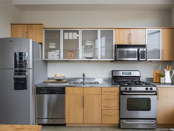 LIVE IN THE HEART OF SONO This SONO Lofts condo screams location. Everything the City of Norwalk has to offer is at your doorstep. Upscale condo in secured building, this corner end unit boasts soaring 10ft ceilings with open floor plan design. Walking into the unit you are taken aback from the views overlooking SONO though large 8ft tall windows which offer abundance of natural light filling the rooms. Kitchen features high-end stainless-steel appliances and double sink. 2 Spacious bedrooms and 2 Full Baths. the Master Bed comes with full bath, walk - in closet, and laundry, as well as electronic window shades for your convenience. Plenty of closet space in the condo itself, SONO lofts also offers basement storage, Bike Room, Fitness center, as well as the luxury of 2 parking spaces with gated access - 1 being covered - a rare find in SONO Stepping outside, you are literally on top of and in walking distance to all of the trendy Zagat rated restaurants of Norwalk. Steps away from the iconic Maritime Aquarium, Arts festivals, Theatres, Waterfront and so much more. All major transportation points and shopping destinations are right around you, including the new SONO Collection Mall... Only thing missing is you