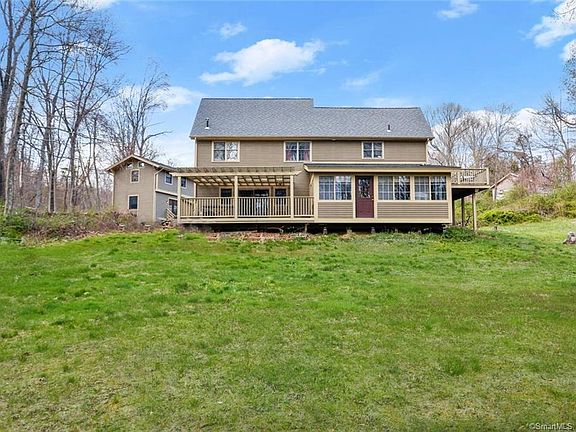 Beautifully updated 3BR Tri-level Contemporary Split (plus an add'l basement/utility 354sf area) situated on 1.67 acres at end of cul de sac with detached 2 story Studio/Office & workshop! From the front porch, step into the dramatic 2 story LR w/floor to ceiling brick fireplace, open balcony & large picture window streaming natural light! Open balcony to the eat-in kitchen w/cherry cabinets, quartz counters w/island & sliders to one of the 2 decks! The expansive FR includes wood stove & sliders to the 4 season sunroom surrounded by windows & vaulted ceiling. The Master bedroom suite has a walk in closet, full bathroom and sliders to private deck with pergola. Two additional main floor bedrooms. ** Additionally, there is a fabulous 2 story detached Studio/Office (16x24) on 2nd flr with 1st floor workshop! Private setting w/multi-level decks, pergola, open front porch & 12x12 shed! Perfect for the "HOBBIEST FARM!" with fruit trees, cultivated blueberries, vegetable and flower gardens. Chicken, goats, possible horses. **Beautiful Quaker Farms Section ** Enjoy all Oxford has to offer: Minutes to Jackson Cove w/sandy beach, gazebo, boat launch, great fishing! Bands play throughout the summer & 4th July fireworks extravaganza! Playground & tennis courts- New middle school; newer High School & library. *BEST ice cream at Richs Farm. Quarry Walk w/choice of shops, food, drink, medical buildings/urgent care, hardware store etc. ** NOT TO MENTION HOUSING TAX AMONG LOWEST IN AREA!
