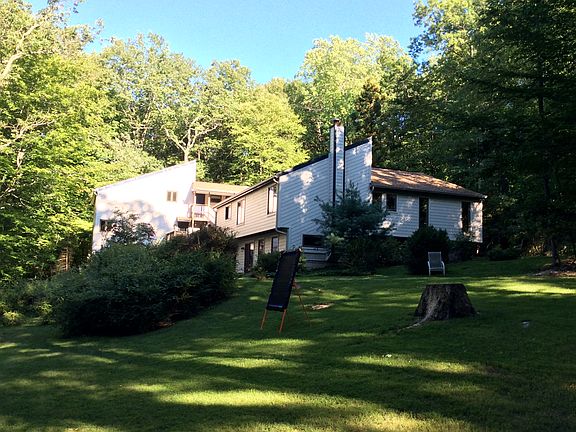 Privacy abounds from this lovely 4 bedroom, 3 full bath contemporary home resting on a beautiful, three acre, wooded lot at the end of a cul-de-sac. Watch the seasons change from the large windows in almost every room. The open, light and spacious rooms are perfectly configured for entertaining as well as every day living. A vaulted ceiling living room is warmed by the wood burning fireplace set against a wood-paneled wall and surrounded by windows. Sliding doors lead to the beautiful outdoor deck where family and friends can commune with nature. The light and bright kitchen has an abundance of cheerful bright cabinets as well as a center island breakfast bar and vaulted ceiling. A formal dining room with arched openings has plenty of room for a dinner party. The master bedroom boasts a vaulted ceiling, bamboo floors, ample closet space and large windows overlooking the woods. A unique feature is the spiral staircase that leads to a library/loft. The adjoining, private master bathroom has a soaking tub and stall shower. There are three additional bedrooms (two with staircases to private lofts) and two full baths on this level. On the lower level, enjoy a family room with wood stove, new wet bar and sliders to the great outdoors! A full bath with whirlpool tub and sauna, laundry room, utility room and workshop are additional features of the lower level. The two car detached garage with covered breeze way has a special bonus of a two story addition for an at-home office, a perfect au-pair suite, and game room. The possibilities are endless for this unique property and tranquil setting. The exterior was recently sided with a composite material, new insulation behind the siding, and finished with beautiful new insulated windows throughout the home. New sliders were installed along with a unique new front door. A large rear yard and raised tree house (playhouse) are also part of the property. All of this within Tewksbury Township and the Blue Ribbon Tewksbury schools.