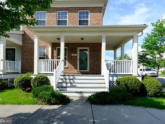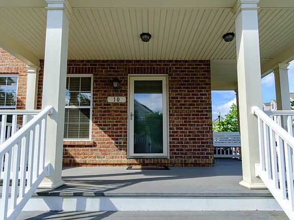 This beautiful end unit in the Renaissance Square development is graced with a wraparound porch and windows on three sides to let in natural light. This truly unique property is located centrally within the development and has brick on two sides, plus a brick walled rear yard. The interior is open with large living room and combination kitchen/dining area. Upgraded carpet and padding. Kitchen and dining areas have wood-look vinyl flooring for ease of care and durability. Stainless steel appliances and 42~ kitchen cabinets. Upper level has 3 bedrooms and 2 full baths including the Master Bedroom ensuite. All bedrooms have recessed lighting and ceiling fans. Custom blinds throughout. The lower level has a full bath and additional room that could be used as a den, guest bedroom or workout room. Rear maintenance free deck has two sets of stairs, one leading to a one car parking pad and the other to the garage and yard. Storage underneath deck. Gate secures backyard for children and/or pets~ safety. Paver pad for dedicated trash and recycle cans. Conveniently located community tucked away from traffic yet close to grocery store, Pizza Johns, a private school and large park maintained by the County. Easy access to all major roads. Low HOA fees.