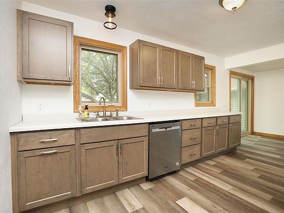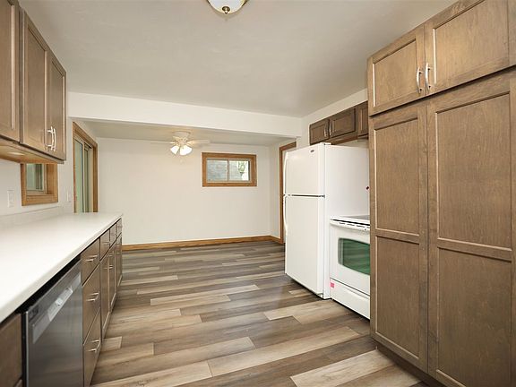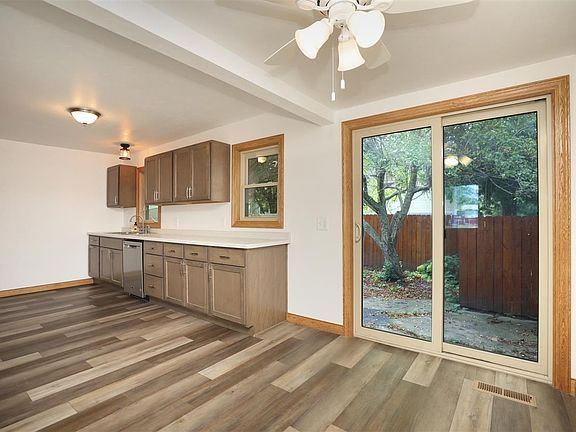 Wow! All the updates done already! This 4 BR, 1 BA home features a completely new kitchen, new flooring, siding, roof and water heater, per seller. Kitchen welcomes a dining area with patio door off the back to newer patio and backyard. Main floor welcomes 2 bedrooms, living room, and full BA. Upstairs find 2 more bedrooms. Attached garage is a plus. LL welcomes all your storage needs. This one won't last long!