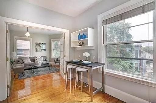 Sunny top floor apartment, steps to the MBTA bus line (#1), a quick walk to the Red Line, and easily walkable to Harvard Square. Quiet location set back from the street but close to all the action. This beautiful unit has one large bedroom, a spacious living room with a beautiful bay window, a huge built in work from home desk, recently refinished hardwood floors throughout, high ceilings, large windows, and beautiful natural light. Additionally, there is a brand new top of the line Miele washer/dryer set in unit, as well as a brand new top of the line dishwasher. You'll be located in the heart of mid-Cambridge, surrounded by beautiful tree lined streets to go jogging, an easy 10-minute walk to Harvard Square, Whole Foods, many parks, the Charles River, and the Cambridge Public Library, in addition to plenty of wonderful restaurants and coffee shops. Strictly no smoking. Pets negotiable, case by case. Parking is permit street parking. First month's rent, last month's rent, and security deposit due upon signing. Unit will be professionally cleaned between tenants. Start date is negotiable, please inquire.