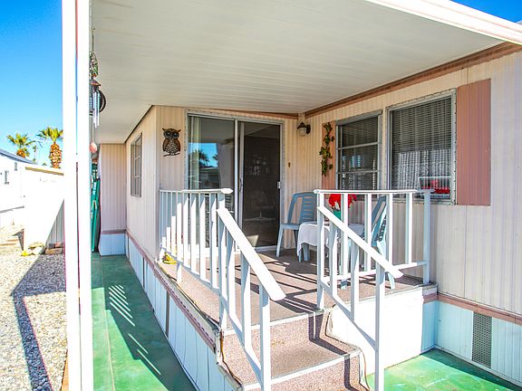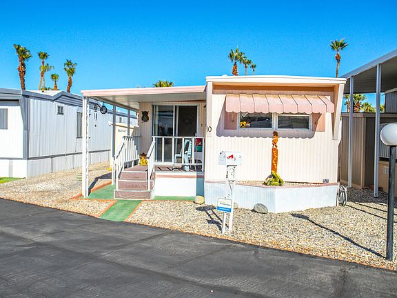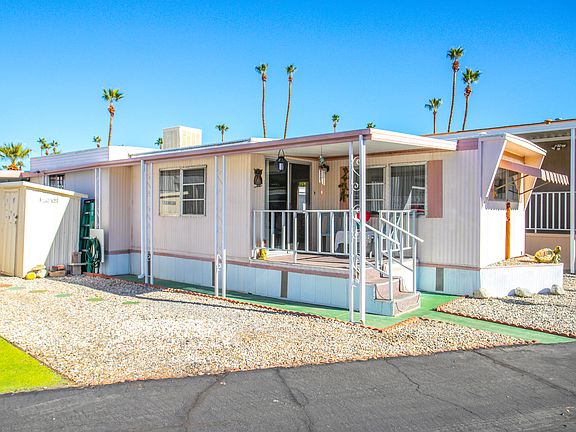 Fabulous 2 Bedroom with laminate floors and meticulously maintained. This one comes turn key furnished with everything you need to begin your desert getaway. Raised front and rear decks offer beautiful mountain views and quiet evenings. Also included are Kenmore appliances and Maytag washer in its own closet. Tramview is a senior park with pool and spa and other amenities.