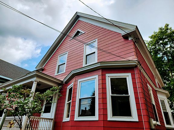 This Charming Gem of a home is located at the end of a quiet Dead End Street with only three other homes right in the heart of town!! Convenient to everything you need and Pettengill Park is right beyond the trees in your backyard! This 1920's home still has lot's of the original features of that era along with modern updates to the kitchen and baths. Original Maple hardwood floors throughout, large bow window, vinyl replacement windows, a modern updated kitchen with tile flooring and two FULL baths, one upstairs and one downstairs. The first floor has a beautiful entryway, formal dining room, living room and bonus room off the kitchen. Second floor has 4 bedrooms, another full bath and an attic with plenty space for extra storage. A full basement with a bulkhead and interior access. A large wrap around porch that leads to a deck over looking the backyard to sit and relax! This is a must see!