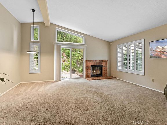 Beautifully landscaped and well maintained, this charming 2 bed, 2 bathroom home is move-in-ready! Nestled on a large lot in Laguna Hills, enjoy a quiet retreat that provides ample space for relaxing outdoors: whether facing a peaceful view on the manicured lawn or a backyard barbecue on the private patio. The bright interior with south facing windows and a neutral color palette feels calm and comfortable. The main living area features high ceilings and a cozy fireplace perfect for entertaining. Plantation shutters, vinyl windows and integrated temperature control features provide an energy-efficient house with low utility costs. Additionally, the detached 2 car garage allows for easy storage and daily convenience. A Single Family Residence with just a short drive to the beach, plus close to community parks, movie theater, shopping, restaurants, and more. With low HOA dues and No Mello Roos, this is a wonderful opportunity!