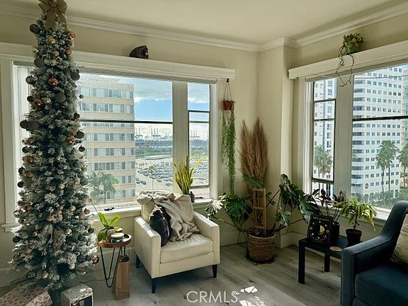 Completely renovated 1 Bedroom, 1 bath end unit with panoramic ocean view. Association pays for Water, Gas and Electricity. Kitchen completely renovated with new white cabinets and quartz countertops. Bathroom updated with custom tiles on the walls and floors. New electrical and plumbing throughout. New laminate wood floors throughout. Ample storage. Living and dining room with extra storage. Panoramic view of city, OCEAN and Queen Mary. Located in the heart of downtown long Beach. Walk to Restaurants, beach and Aquarium of the Pacific. Beautiful historic building with a common area, including garden and rooftop Atrium that boasts a 180-degree ocean view -- MUST SEE!