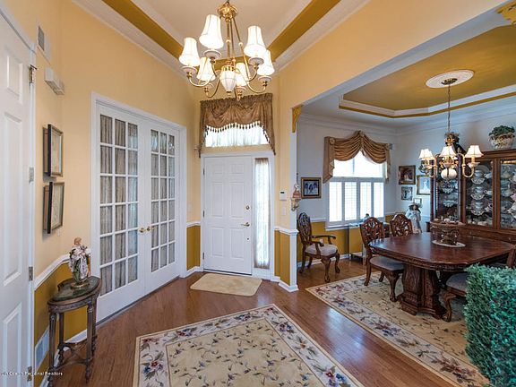 Toll Brothers adult community in Freehold.....Brick front with paver walk way takes you to the front door, accented with lush landscaping....foyer with tray ceiling leads you into the home...Hardwood flooring in most of the home...42'' cabinets with granite counters & backsplash.. eat in kitchen. Plantation shutters on the windows that lets in natural light and privacy when needed..Formal dining room accented w/tray ceiling...Master bedroom expanded with walk in closet and MB w/soaking tub and stall shower...the French doors lead into the private office/living room with great natural light...the family room is open in the kitchen to enjoy and for great entertain.....the private backyard w/ shrubs is finished with paver stones......ready to be your next home