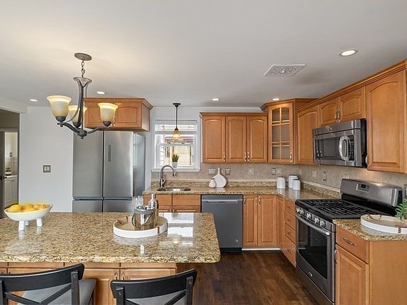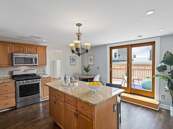 This tastefully renovated 3 BED/2 BATH condo will impress you with its spacious rooms filled with natural light, AC, soaring ceilings, 2 OFF STREET parking spots & an amazing OVERSIZED PRIVATE DECK with views of the BOSTON SKYLINE. Double glass doors create a seamless indoor outdoor living space which flows from the large eat-in kitchen - a chef’s dream with tons of cabinet space, SS, granite, newer refrigerator & dishwasher (2019) & huge island with even more storage and space for a wine refrig. Natural light accentuates the beautiful hardwood floors. The main bedroom is ensuite. Gas furnace & AC condenser new 2019. Newer roof & windows. Separate laundry room in unit. Private storage space in Basement. Low condo fee. Pet friendly. 3 owner occupied units. And all this with an incredible location just a short walk to Sullivan Square T-stop & dining & shopping at nearby Assembly Square. With its prime location in a quiet neighborhood in vibrant Somerville, this property is truly a gem!