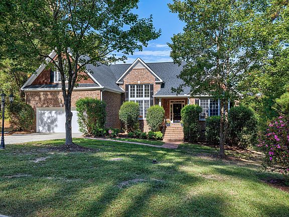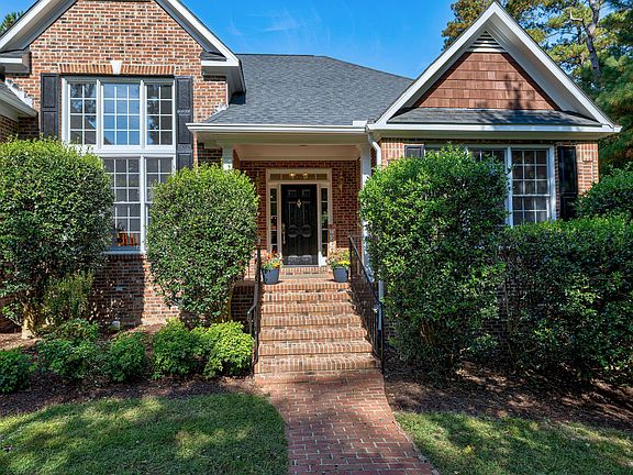 Welcome to this spacious Grove Park home that lives like a ranch with 3 bedrooms and 2.5 baths on the main floor, plus a flexible upstairs retreat with an additional bedroom and full bath. The thoughtful layout features vaulted ceilings, a light-filled front study, and a beautiful sunroom that opens onto a spacious freshly painted deck, perfect for relaxing or entertaining while overlooking the backyard and golf course. Recent updates include painting the entire exterior of the home (including staining the deck), extensive landscaping, and a new sunroom door leading to the deck — all adding to the home's fresh and move-in ready feel. Set on nearly half an acre on a quiet cul-de-sac, this beautiful home offers both privacy and space inside and out. Grove Park residents enjoy amazing community amenities, including a pool, clubhouse, tennis courts, playground, fitness center, and lake access — all in a convenient Durham location with easy access to RTP, shopping, and dining.