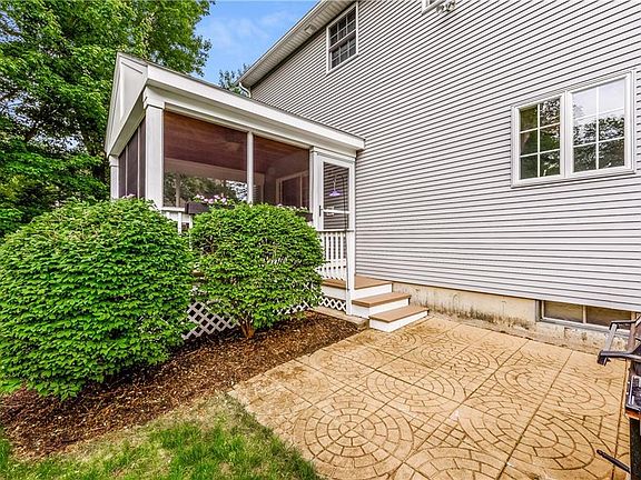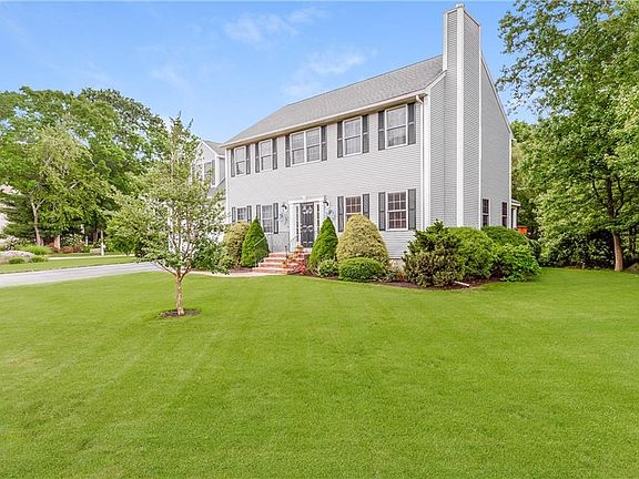 A welcoming front entrance leads you to the grand entry foyer of this 4 Bedroom 2 ½ half bath colonial with a versatile floor plan and bright interior that combines casual living with the often-desired formal dining and living rooms. A granite and stainless kitchen, dining with sliders to a cozy screened-in porch, a charming family room with gas fireplace, a spacious mudroom/laundry/half bathroom, den/office, plenty of closets, 9' ceilings, crown moldings, and hardwood floors are all featured on the main level. While a 2nd-floor balcony, an expansive master with a large walk-in closet, en-suite bathroom with granite counters and separate shower and whirlpool tub, 3 additional bedrooms (one with a possibility of a 2nd floor family/bonus room) and a full bathroom with granite counters complete the second level. The lower level, with access to the outside, has plenty of storage and could easily be finished for additional living space. The setting is beautiful, on a large manicured corner lot deep in the desirable Kingston Woods neighborhood with views of the expansive lawn and woods of open space that surrounds the development. The community is serviced by all public utilities including town sewer, water, and natural gas. This location is so convenient with easy access to the bike path, URI, Amtrak to New York and points north and south, Wickford Commuter Railway to Boston, Providence, Newport, and all of South County's sandy beaches.
