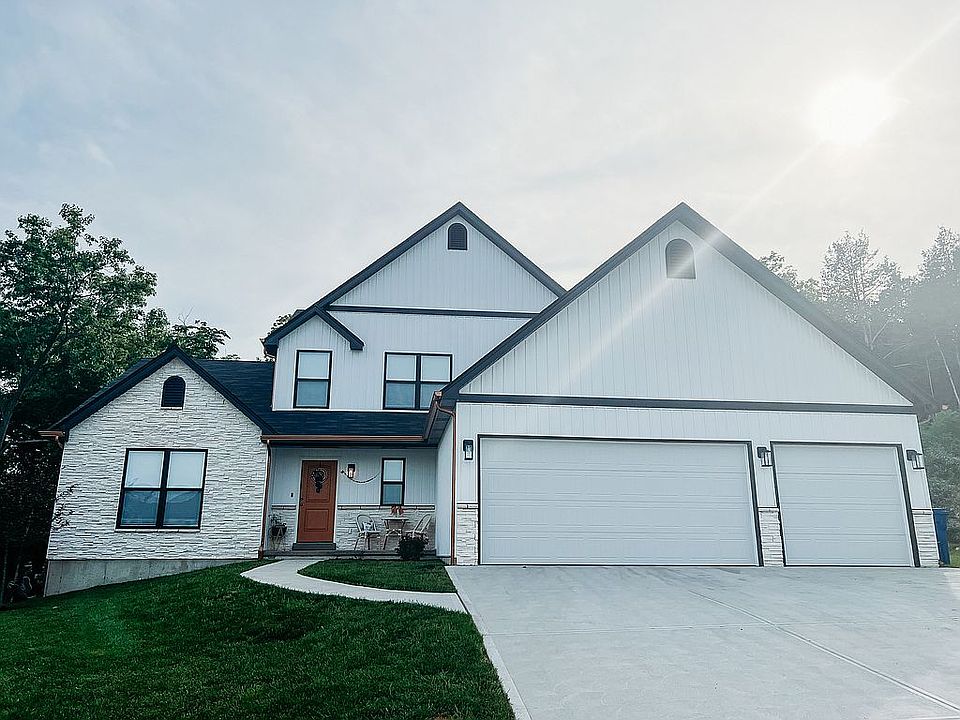 Bring your own agent! Call or text 573-714-2299 for a showing Today! 4 Bedroom/ 2.5 Bath/1.5 Story/ 3 Car Oversized garage Check out this beautiful home! This home features a rock front and copper-colored gutters. The main level has upgraded laminate flooring though out, tray ceilings in the dining room, vaulted ceilings in the kitchen, and 17 foot ceilings in the living room. Master bedroom and bath is located on the 1st Floor! The Kitchen has 42" upper cabinets, center island, and a large pantry. This home has a large patio with and outdoor kitchen for entertaining and a backyard that faces the woods. Also included is a 14 foot long Swim Spa. This home is located right off of Old Lemay Ferry and M hwy. Mins from 21 and 55.