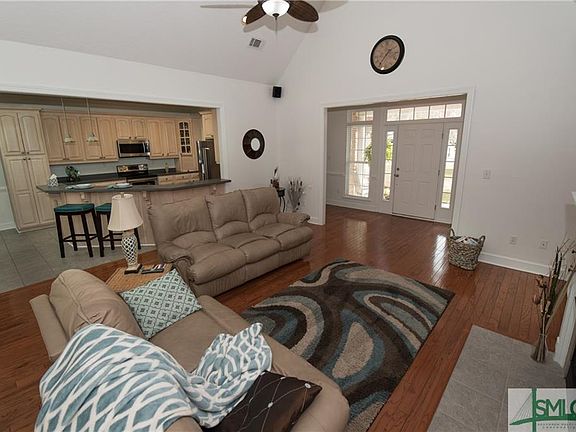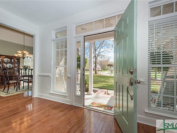Full brick, custom built, one owner home. Mainly one story! Fabulous lot with live oak trees with private, wooded back yard views and fire pit. Open great room and kitchen with built in book shelves flanking the gas log fireplace. Opens to fabulous back porch overlooking the yard. Hardwood in the master bedroom as well as wood shelving in the fabulous master closet. Separate wing of the house has two more bedrooms and a bathroom with double sinks. Upstairs is your fourth bedroom. Two car garage attached with one bay carport with 9+ft height clearance AND another separate 2 car garage/workshop with 1/2 bath in garage and upstairs apartment/rec room with separate entrance. Could easily add a kitchenette. Zoned irrigation system. No flood insurance required. Only county taxes which equates to approximately 1% of your purchase price and includes curbside trash and recycle pickup. Great amenities including street lights, sidewalks, community pool & playground and ballfields!