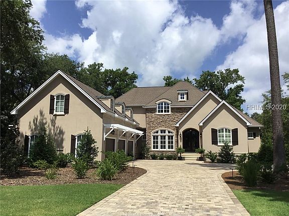 Rare Gem-Gorgeous French Country in impeccable condition sold as luxurious turnkey! Beautifully furnished! Extensive remodel of lushly landscaped golf home with captivating views. Securely nestled in the heart of Colleton River on one of its most private streets. Spacious, sunlit open concept leads to grill & dining terrace. Swanky kitchen w/Wolf pro-range w/double ovens, Subzero, Miele. All 4 bedrooms ensuite but master suite is a private oasis of luxury: soaking tub, huge shower, double vanities, double closets. New energy efficient appliances, hvacs, so relax and enjoy this desirable lifestyle. Don't miss this amazing home. Call today.