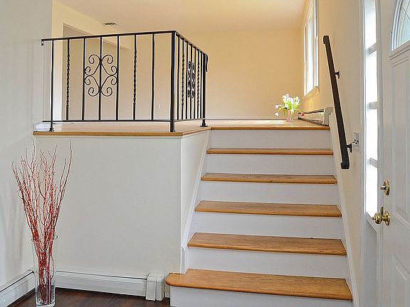 Newly renovated home, 2467 sq ft per tax record. Brand new entry door. Hardwood floor. Brand new eat-in kitchen with trendy cabinet, granite countertop, tasteful back splash, brand new stainless steel Whirpool appliances. Hugh master bedroom with brand new baths and two closets; sliding glass door from family room to leveled yard. Southern exposure provides lots natural light, walk to Park & Ride for NYC bus. Washer & Dryer in mudroom sold as is.