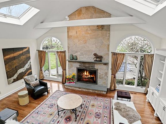 Pristine, turn-key modern colonial on sought after quiet cul-de-sac in the heart of Darien. Soaring ceilings, walls of windows, an open floor plan, brand-new state of the art kitchen, and heated pool make this home uniquely special! 5 beds with walk in closets and en-suite baths (all recently renovated and exquisite) make for luxurious spaces for all. 3 fireplaces, 3 garages, and a spacious basement. Outdoor deck to heated pool with views of professionally landscaped grounds set on .55 acre is an entertainers dream! Easy maintenance, private association, within walking distance to town, train and park. HIGHEST & BEST OFFERS DUE BY 4/11 @ 12 NOON