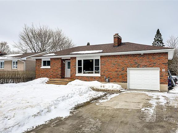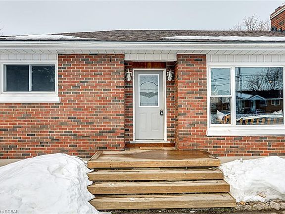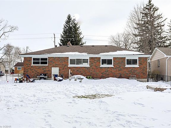 Cozy all brick bungalow in the heart of Nottawa! Perfect starter home or for retirees! This two bedroom, one bathroom home could easily be converted back into a three bedroom if needed. Nicely updated and maintained! Newer engineered hardwood floors, white kitchen, sliding barn door and beautiful wood beams. Main floor living with open concept kitchen and living room features gas fireplace and large front window. Fully fenced backyard on a 66x157' lot. Single attached garage with man door to backyard and access to full unfinished basement. Full water treatment system in place. Easily work from home with Bell Fibre high speed internet available. Family friendly neighbourhood close to schools and great local shops/restaurant. Only a 5 minute drive to downtown Collingwood!