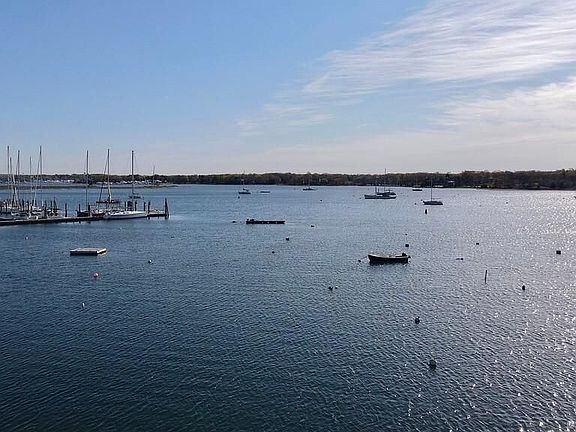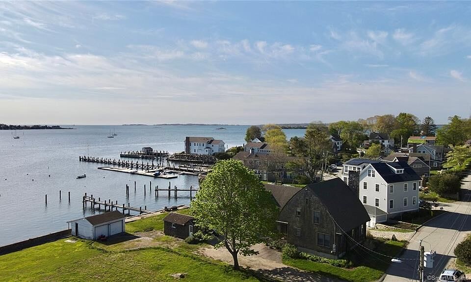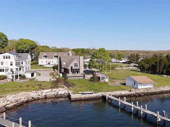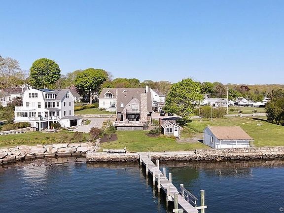 Spectacular waterfront location at the mouth of The Mystic River with views out to Fishers Island , Watch Hill and beyond....a three state view...with a fascinating variety of boats coming up the river directly in front of this house Spacious shingled Bow House with boat shed and 50 foot private dock nestled in the heart of Noank Village. Living room/dining room and family room each with fireplace . Central kitchen . First floor bedroom and full bath. Second floor has three bedrooms and two full baths. All wood floors . Large deck overlooking the water with steps down into the yard. Boat shed. Full basement. No interior pictures at this time as the house is still being cleared out.