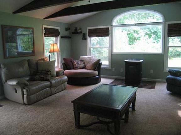 VRM#38 Seller will entertain offers between $329,000 and $378,876.Spacious open plan is a versatile floor plan.3 bedroom septic w/ several rooms to choose as bedrooms, exercise, office or den. Former dining room is now a big sewing rm or can be a living room. Attached 2 car garage w/ large additional attached shed for storage of lawn mower, snow blower & tools.Outdoor RV hookup. Dry basement for additional storage w/ finished den with a daylight window. Beautiful new kitchen has quality dovetail drawers & cabinets w/ quiet self closing drawers & doors plus a big pantry closet. Stainless steel appliances and a pot filler above the gas range. New ceramic tile floor in the kitchen extends to the front foyer & bath. There is a new oak floor in the dining room. The big new family room has a cozy pellet stove and lots of windows to bring in all the cheery light. Master suite w/ 3/4 bath & big walk-in closet. Lovely landscaping w/reseeded front lawn. Quality Cedar clapboard siding.