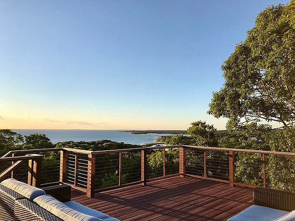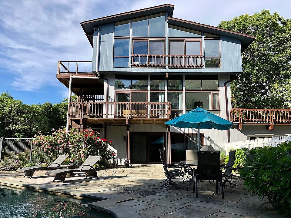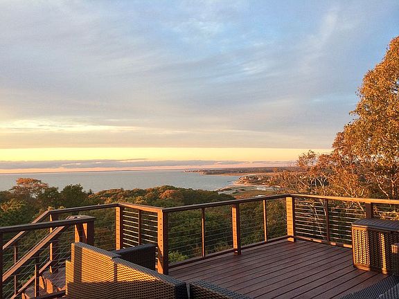 For Sale by Owner. Buyers Agents Wellcome Contact owner Spectacular panoramic views and blazing sunsets across Buzzards Bay are second to none from this newly renovated hilltop home. The multi-level design offers both an open floor plan and private spaces. Soaring beamed cathedral ceilings, exposed brick, multiple decks and sliding doors, floor-to-ceiling windows, and newly installed hardwood floors create this distinguished property. Expanses of glass provide natural light and showcase the magnificent views. The modern, custom-built kitchen features imported Italian cabinets, high-end appliances, and a sleek kitchen island for ample countertop space. Elegant tiling and modern fixtures adorn each of the four remodeled bathrooms, with a jet tub and rain shower in the Master Bathroom. The fireplaced Master Bedroom also features a wrap around deck overlooking the pool. Outside is the gorgeous heated gunite lap pool surrounded by a spacious slate patio perfect for entertaining. The property has a new roof, extensive stonework, mature landscaping, and an elongated driveway. 10 Beechwood Road is located in a picturesque, manicured half-gated community that is perfect for comfortable living and hosting. The Sippewissett Highlands Association offers deeded beach rights and tennis courts. The Shining Sea Bikeway, conservation trails, and downtown Falmouth are easily accessible.