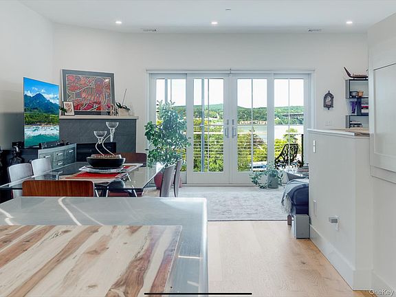 Located just above the Hudson River in Beacon, NY, this modern townhome offers a rare opportunity for luxurious, three-story living with sweeping views of the river and Mid-Hudson Bridge. Completed in 2022, it provides distinct spaces for living, dining, and private relaxation that ensure both privacy and flow. The top floor features a spacious living room with expansive windows and private deck showcasing stunning river views, anchored by a striking Niche chandelier and cozy fireplace for warm ambiance. The open concept layout flows effortlessly to the dining and kitchen spaces. The kitchen is a chef's dream, with high-end stainless steel appliances and sleek quartz countertops, ideal for both cooking and entertaining. A thoughtfully designed dumbwaiter transports groceries from the private garage level up to the kitchen, offering the ultimate in convenience. On the second level, the primary suite serves as a private retreat, complete with panoramic river views, a spacious walk-in closet, home office with custom built-ins, and a luxurious bathroom featuring a dual vanity, walk-in shower, and Toto toilet for added comfort. Two additional bedrooms, each with its own full bath and walk-in closet, offer flexibility for family, guests, den/TV room, or home office space. Energy efficient heat pump and central air provide year-round comfort. Just a short stroll from Beacon’s vibrant Main Street, Dia:Beacon museum, and the Metro-North train to NYC, this home places you in the heart of a dynamic community filled with galleries, boutiques, cafes, top-tier dining, parks, and a quick and convenient commute to New York City. A perfect blend of sophistication, comfort, and location that will in every aspect enhance your lifestyle!