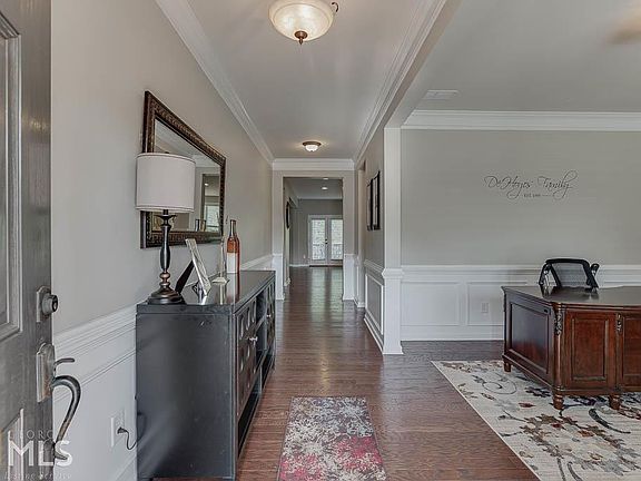 FULL FINISH BASEMENT w/ BATH, This home is nestled in this private wooded intimate Gated Community in a Highly Rated North Gwinnett School System. Many designer options including All hardwoods on the main level and 2nd floor hallway, Oak Tread Stairs, well pointed trim molding, stain cabinets, Granite Countertops in the kitchen. This home offers a large amount of storage in the basement, shelving above the garage doors, bedrooms have walk-in closets, Spacious pantry in the kitchen and a 2nd floor laundry room.