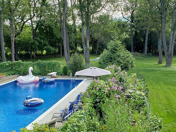 FANTASTIC 3-4 bedroom home Private quiet beautiful, In-ground pool, new liner two years ago. New throughout. Roof new 1 year, Interior Repainted, Perennials, Landscaped Fenced patio area, New tile, new electric, City water however well is still hooked up for pool and landscaping. Private quiet Enormous landscaped yard full of perennials, Rose of Sharon, Hosta, Pear trees loaded with luscious pears FANTASTIC home. New throughout. Must see! Plan now. You do not want to miss this one