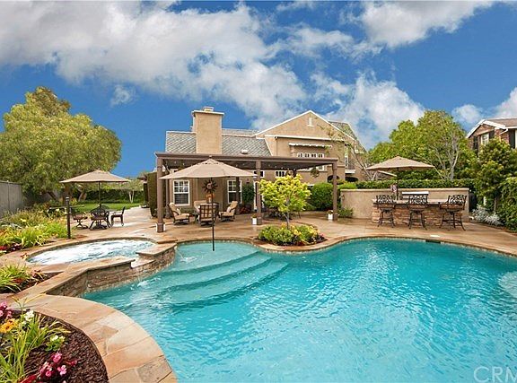 This is that beautiful home you've driven by- just waiting for it to come on the market. And now it has. Residing on one of Ladera Ranch's most desirable streets- this European farmhouse style residence is settled on an expansive pie-shaped parcel offering awe-inspiring panoramic views. The romance begins with a beautifully landscaped front garden and continues through an enchanting courtyard to a light-filled interior. A stylish eye for design is evident throughout the residence, with finishes of rich hardwood, travertine and granite. Noteworthy highlights include a dramatic formal living/dining room with cast fireplace, chef inspired island kitchen with double ovens, 6-burner cooktop, walk-in pantry, sun-drenched extended breakfast nook and a spacious family room with elegant built-in and stone fireplace framed by walls of windows and lush views of the serene backyard. The luxurious master suite is an intimate place to relax and recharge and includes a private view balcony, rejuvenating spa-like bathroom with jetted tub, separate shower and custom walk-in closet. A downstairs guest bedroom offers privacy for visiting family and friends. Magnificent outdoor oasis has it all including lush landscaping, sparkling pool with Baja shelf, spa, barbecue island with stainless grill and a charming covered porch with stone fireplace. Garage parking for three cars. This extraordinary home will delight the most discerning buyer.