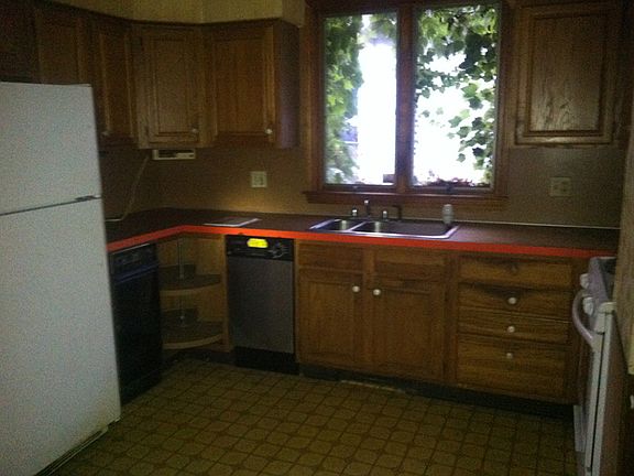 Exterior Features:Wood siding with an asphalt roof. Enclosed front porch. Driveway along the side of the house with a large parking area in the rear. Overall fair condition. Windows in tact.Interior Features:Mostly hardwood floors throughout with vinyl flooring in the kitchen and bathrooms. Kitchen is dated but complete and in fair condition. Full bath is dated but complete with tile flooring and walls. Two bedrooms on the first floor and two on the second. The second floor is a finished-attic style floor, and one of the bedrooms is captive. Full, unfinished basement with all mechanicals.