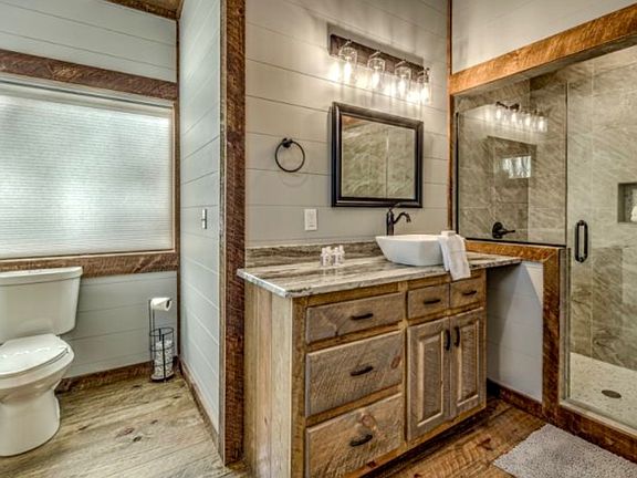 Brand New Mountain Modern Home located less than 5 min. of downtown McCaysville, local amenities & outdoor recreational activities. This unique property is nestled on a 1.8 acre wooded lot situated on the GA /TN border offering a perfect blend of Southern hospitality & serene mountain living. This home is the perfect mix between the rustic lifestyle & modern amenities w/a combination of wood, stone & drywall. The property features a spacious 4-bedroom, 3-full bath layout. Soaring ceilings adorned w/large windows that flood the interior w/ natural light. The open concept living area boasts a cozy fireplace perfect for gathering with family & friends. The modern gourmet kitchen is equipped w/ SS appliances, granite countertops & ample cabinet space making it a chef's delight. The primary suite is on the main just beyond the living area & offers a soaking tub, tile shower, double vanities & large walk in closet. Step outside to the spacious stacked porches (8ft &16ft wide) equipped w/2 cozy fireplaces, ideal for entertaining or enjoying morning coffee while soaking in the tranquil surroundings. The terrace level features a wet bar, Large Media/game area w/stone FP, Laundry, 2 additional bedrooms & a full bath. NO C&R. NO HOA. Wood Fence on road side of property w/ gate @ driveway entrance. All Paved road access. Close to Wineries, Dining, Shopping, Horseback Riding & Whitewater Rafting. Large yard for the kids & pets to enjoy. Quiet Neighbors. This home offers a peaceful retreat while remaining conveniently close to both GA & TN attractions. Whether you're looking for a family home or a vacation getaway, this property is a must-see. Partially Furnished. Come fall in love with where you live!