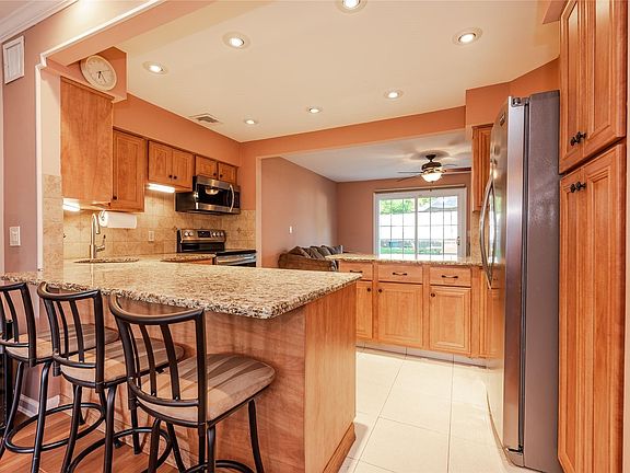 Spacious and Updated 4 Bedroom 2.5 Bath Colonial Splanch set back and perfectly situated on a quiet cul de sac. Open & airy floor plan with updated Eat in Kitchen w/granite counters and stainless steel appliances. Large den w/brick fireplace and sliding glass doors to the patio and fenced yard. Formal living room with vaulted ceilings. Primary bedroom suite w/ensuite bath that includes jetted soaking tub & shower stall and walk in closet. Andersen windows. CAC. 200 Amp service. Extra long driveway for multiple off street guest parking. Won't last!