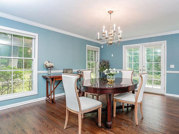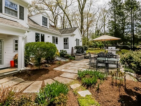 Manicured gardens and a stone terrace surround this Clapboard Colonial on 2.5 acres in the Round Hill area of Greenwich. There is a sensational new gourmet eat-in kitchen. This 5 bedroom, 3.5 bath home offers a serene & private setting w/lovely plantings & mature landscaping. Sunlight cascades through a bounty of window bays, french doors, floor-to-ceiling windows & a sky-lit garden room. Marble fireplaces compliment the spacious formal living room & beamed-ceiling family room. Elegant master suite that includes his/her walk-in closets & newer bath, 4 additional well-appointed bedrooms. This 4,399 sqft country home offers a retreat on the lower level w/a wine cellar, office/work space &/or playroom. Expansion & pool site possibilities.
