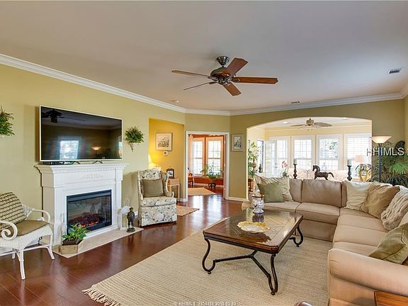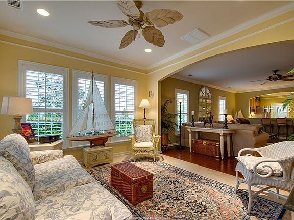 Elegance and quality throughout. These meticulous owners have done it all. You won't find a more beautiful lagoon view than this. Great Room flows into the Sun Room, and double porches and brick patio/outdoor cooking area with knee wall. This lovely 2 bedroom/2 bath home has a separate den (which can be used as another guest room). Crown moldings and architectural details everywhere! Hardwood flooring, granite island in huge kitchen. 2 car extended garage with permanent staircase. The best enlarged private rocking chair front porch make this an outdoor living, Southern Low Country dream home. Nothing left to do but enjoy life.