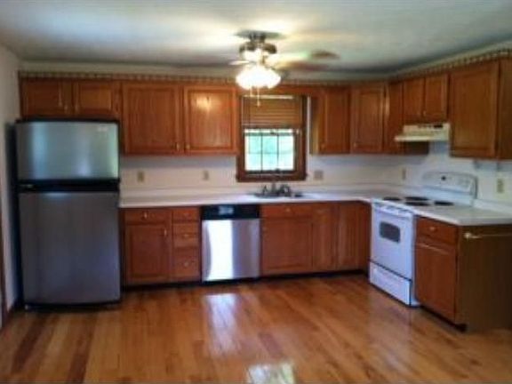 East Derry Dormered Cape in small cul-de-sac subdivision. Hardwood floors, large kitchen/dining combo, front to back living room with fireplace AND corner gas stove, beautiful wood floors on main level, first floor laundry, newly carpeted bedrooms and hall. Large finished walk out basement, garage under w/opener, large rear deck, beautiful lot, carefree vinyl siding, jungle gym