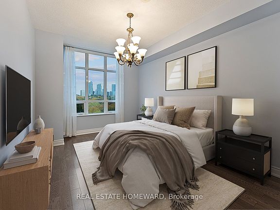 Living The Good Life At 10 Bloorview Pl. Built In 2011 With Attention To Detail. Surrounded By Beautiful Landscape And Gardens To Brighten Each Day. Watch The Fall Colors Burst From Your Huge Wrap Around Balcony. Unit 714 Is A Corner Unit, Boasts Bright Functional Rooms Throughout, 9 Foot Ceilings, Split 2 Bedroom Layout, Timeless Hardwood Flooring, Plenty Of Windows To Bring In The Natural Light And Amazing Views. Eat In Galley Kitchen Overlooking Gardens, Built In Appliances, Tons Of Counterspace For Meal Prep Too. Kitchen Opens Up To a Large Dining Room / Living Room Combination With Walk Out To Wrap Around Balcony. So Proud To Entertain For Dinner Parties, Game Nights And A Wonderful Place To Relax. Prime Bedroom Has 6X5 Foot Walk In Closet With Built-ins And a Lovely 4 Piece Ensuite. Spacious 2nd Bedroom With Double Sliding Glass Doors And Wonderful Views Out Large Window. Stackable Ensuite Laundry. Double Door Entrance Closet Too. One Parking and One Locker Included. No Need To Leave As Your Building Contains Full Exercise Room For All Fitness Levels, Indoor Pool, Hot Tub & Sauna, Library, Games Room, Party Room. Some Photos Are Virtually Staged.