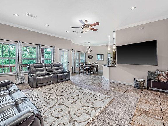 This fantastic home is built for entertaining and living. Check out the spacious open living and dining area. Enjoy the second living area with family and friends. Don't miss the spacious decks and outdoor spaces. The split floor plans featuring bedrooms on both floors are great for privacy. In addition to primary suite, two other bedrooms have attached bathrooms. There is a private office on the main floor while the office/gym area on the lower floor provides lots of flexibility. Check out the large safe room for peace of mind! Ready and waiting on her next owners!