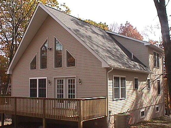 'BRAND NEW' 3Br/2 Bath Chalet with 1 car garage and ground level entry for lower level family area. Special features include: 'vented' propane fireplace, swing style bedroom closet doors, cubby storage areas, recessed lighting with dimmer switches, ceramic tile flooring, central AC, well designed window placement and selection, etc. Truly a comfortable, turn key opportunity..appliances and all!, Beds Description: 1 BED 2nd, Beds Description: 2+Bed1st, Beds Description: 1 BED 2nd, Baths: 1 Bath Level 1, Baths: 1 Bath Level 2, Baths: Rough Plumbing, Eating Area: Dining Area, Eating Area: Modern KT, Sewer: WS Comm Central