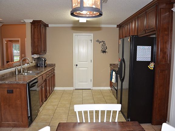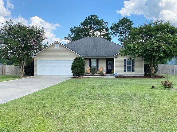 Charming 3 bedroom/2 bathroom home on 0.57 acre located just 10 minutes north of Moody AFB! Open concept kitchen, breakfast, and living rooms. Desirable split floor plan with laminate flooring in main areas, tile in kitchen and bathrooms, and NEW carpet in bedrooms! Kitchen has step-up counter tops with area for bar seating, trey ceilings above breakfast area, and two pantries. Large master with coffered ceilings and master bath with soaking tub, walk in shower, his and hers vanities, built in shelving and linen closet. Spacious foyer with room for a mud bench or hall tree. Lots of windows in kitchen and living room that overlook the large, private lot which backs up to trees. Covered front and back patios. Backyard is completely fenced and perfect for children and pets. Security system with two cameras! Exterior is easy to maintain vinyl siding. This home is move in ready!
