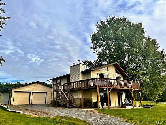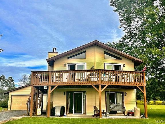 Welcome to 10 Bluejay Drive in the Bear Creek Lakes Development, nestled in the Pocono Mountains just minutes from Historic Jim Thorpe, hiking, biking, whitewater rafting, and much more. This home boasts 5 bedrooms and 2 full bathrooms across two levels, open concept family room/dining area/kitchen with wood/coal stove, a large lower-level living room with wood/coal stove and oversized 2 car garage. New flooring throughout and modern color palettes give this lake-view home a cozy modern vibe. Home has lake views of 160 acre Bear Creek Lake. Amenities include heated pool, 2 beach areas, tennis courts, clubhouse, and more! Enjoy your morning coffee from the large deck overlooking the lake as you take in the peace and tranquility of the Pocono Mountains. *Showings begin at Open house Saturday, September 2, 2023 from 11:00AM to 2:00PM*