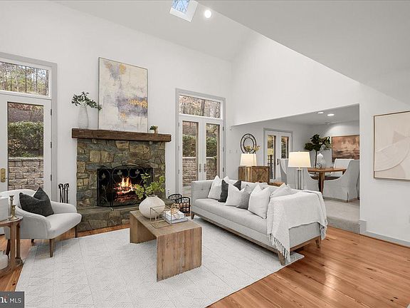 Stunning renovated contemporary with soaring ceilings, spacious rooms, beautiful light and views steps to the MacArthur walking and bike path, minutes from Cabin John restaurants and shops, the Canal Towpath, and in the Carderock/Pyle/Whitman district! A hiking and biking paradise! Beautiful hardscape and landscaping welcome you. The wonderful floor plan includes a warm living room/great room with gorgeous stone fireplace and wood floors with french doors open to the rear entertaining sized patio. You feel like you are on vacation at home! The space is open to the dining room and flows beautifully to the lovely kitchen with island open to the family room with second fireplace and tree top views. The kitchen leads out to lovely patio with room to dine "al fresco" and grill--this adjoins a more expansive patio with great flow for parties! Powder room. A first floor primary bedroom suite includes a luxurious, spa-like renovated bath with soaking tub (oh the views!) and separate oversized shower. Ample closets. The primary suite has a private 3 season room retreat and an office. Upstairs find 3 very large bedrooms, massive amounts of closets and storage and 2 renovated baths. The lower level has a daylight family room/recreation room with great light (south facing) and plenty of room for a TV/media space plus game room! Large utility storage room with laundry. 2 car garage is impeccable! EZ commute with multiple routes to DC, NoVA, 270 corridor. Potomac Village with restaurants, 2 groceries, gourmet and fish markets, hardware, convenience and more is about 8 minutes away. Parks, trails, golf galore, several community pools you can join are nearby. Lovely neighborhood of 20 plus houses where everybody knows your name.