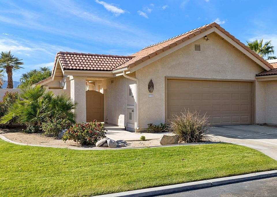 Welcome to your dream desert retreat. As you enter the gated entrance into an inviting wrap-around patio you will find this is a private outdoor retreat and is an ideal spot for morning coffee and or entertaining friends in private. Right outside the back gate is the community pool and fantastic mountain view. Entering the home you step into this beautifully designed open floor plan that seamlessly connects the living, dining and kitchen areas. With spacious 2 bedrooms and 2 full baths that is light and bright, this 1212 sq foot condo feels like a private home with only one attached wall. This property is not just a home, it's a part of an active fun community with pickleball and tennis courts and lush green belts that surround the entire community, providing a picturesque setting for daily walks, picnics or simply appreciating the beauty of nature including the distinguished JW Marriott's Desert Springs golf course that is just adjacent on your walks. Situated in the heart of Palm Desert, this home offers proximity to El Paseo Drive, often hailed as the Rodeo Drive of the desert. Indulge in a world-class shopping experience,explore fine dining options, and immerse yourself in the vibrant cultural scene. Priced to sell at $479,000 don't miss the chance to call this oasis home, contact us now to secure your place in this exclusive community. Did I mention Views!!!