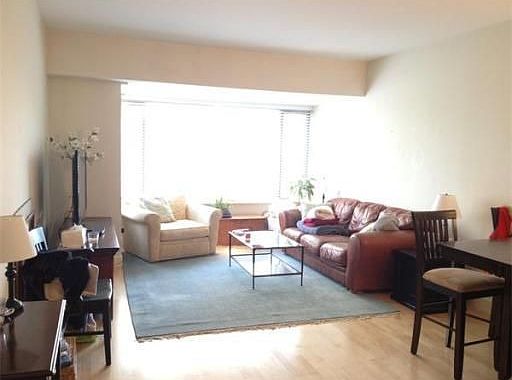Sunny front facing one bedroom features large living/ dining room with open concept SS kitchen & granite counter tops, pergo floors, large windows throughout, walk in closet in proportionate bedroom and a washer dryer in unit!!! Concierge and elevator condo building. Central AC ! Garage Parking Included!!!