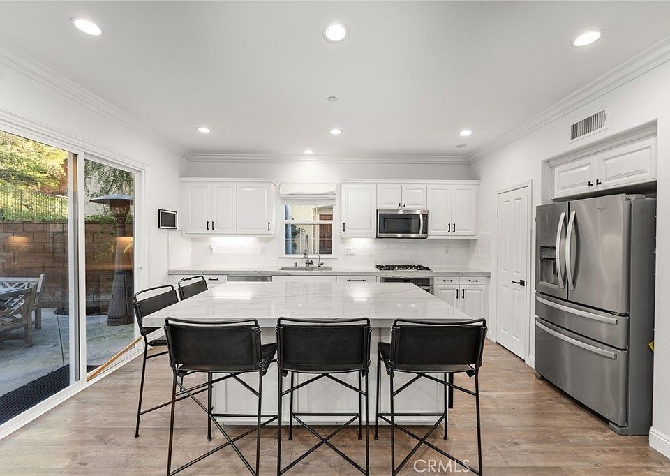 RARE Opportunity- this special Arborel 3X residence is sited on an oversized corner lot with its own large driveway. This highly desired Plan 3X residence offers exceptional privacy with just one neighboring home, and is larger than a standard Plan 3 with an oversized downstairs office/den. Welcome inside a light-filled main level with hardwood type floors throughout. At the heart of the home is the great room, complete with a family room with fireplace and built-ins that flows into the gourmet kitchen perfect for both entertaining and everyday living. The kitchen features a massive island with seating, designer finishes, quality stainless appliances, a built-in wine fridge, and a large walk-in pantry. Sliding doors open to your backyard retreat with a spacious patio and lawn, equipped with a built-in BBQ ideal for outdoor gatherings. Upstairs, three bedrooms and two full baths include your primary suite with a luxurious en-suite bathroom. The primary bath showcases double sinks, an expansive walk-in spa like shower, and a spacious walk-in closet. The attached two-car garage provides ample additional storage space. Arborel residents enjoy celebrated community amenities including resort-style pools, spa, cabanas, clubhouse, BBQ areas, and hiking trails, all within minutes of top-rated schools, beaches, and premier shopping and dining destinations. A rare combination of privacy, space, and amenities in this sought-after community.