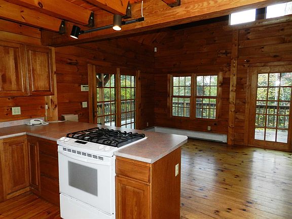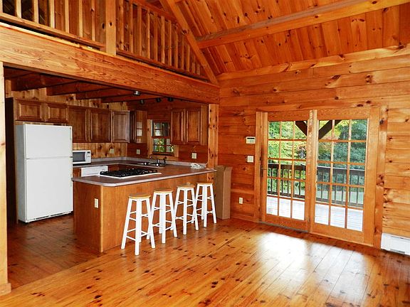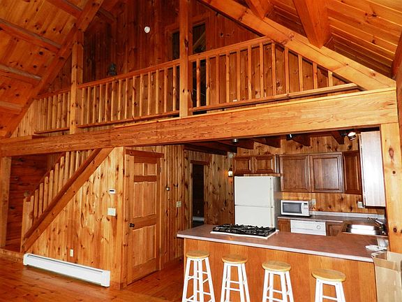 Log Home hideaway, on 9.3 acres of privacy. Immaculate condition move right in. Feelings of being in the Adirondacks with all of the conveniences. 1725 square feet of living area. All wood floors just refinished. Open floor plan of Kitchen-dining area-living room with cathedral ceilings and large bank of windows. Two bedrooms and hall full bath. Upstairs Master bedroom with full bath, balcony. Basement with family room with half bath, walk out, half storage/utility and laundry area. Wrap around deck, level yard surrounded by mature trees. Total privacy, last on dead end town maintained dirt road. Total peace and quiet to enjoy. Tenant to fill out rental application, supply full credit report, references, proof of income, renters insurance, 700 plus credit score, no pets, no smoking. First Month & Security each $2400 due at signing of lease. Tenant responsible for lawn and snow removal, garbage & utilities.