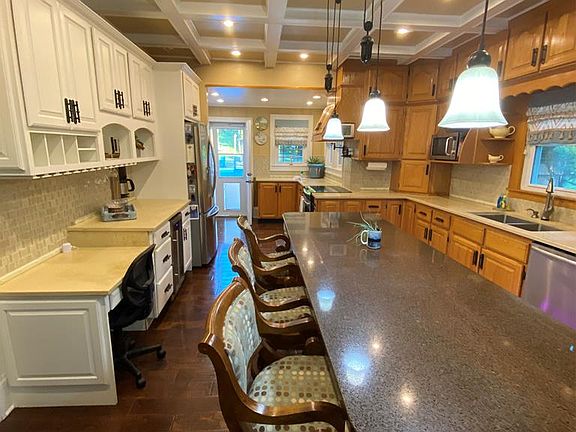 Beautiful ranch home totally remodeled and updated in the past few years, roof, windows, hardwood floors, coffered ceiling, new wiring, natural gas fireplace, custom oak cabinets, quartz counter top, kitchen island, stainless steel appliances. In-ground heated Olympic size (per Seller) pool, pool house, attached 2 car carport, storage building, and much more. A must see! New Heating and Cool Unit installed Jan. 2021.
