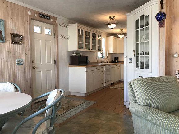 Peaceful water views from the master bedroom, living and dining rooms plus upper and lower decks. At low tide, fish off the sand bar about a 100 yards from the house, and walk out to Basket Island and on to Monument Island from Hills Beach. Ride your bike to Goose Rocks for its famous ice cream cones. Live at Hills Beach or be an investor owner with the home fully furnished. Parking for 7 vehicles including a super tall RV/car port and room to grill dinner in the shade. This lovely home has a fully renovated upstairs bathroom with laundry, fully renovated kitchen with plenty of cupboards and counter space, and a renovated master bedroom with sliding doors onto a private deck. Two bedrooms up stairs, one bedroom downstairs. Full bath on both levels. Whole house generator for peace of mind. Fenced dog area. Outdoor shower. Heat stove in living room. First floor is open concept. Ask to see this sweet home in person!