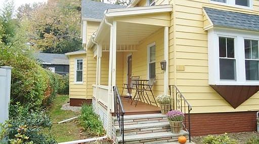 Very charming, cozy in-town house situated in a great neighborhood on a dead end street within a very short walk to the center of town. Enjoy brief evening walks to the many restaurants, cafes and music venues in vibrant downtown Northampton. Recently remodeled home including new kitchen, two remodeled full baths, electrical service and updated wiring, replacement windows, refinished floors, interior paint, new roof, exterior paint, front porch and gutters. The bright, sunlit floor plan presents a nicely sized kitchen with peninsula separating an expansive area for dining. Enter the living room from the country front porch for sitting and enjoying the tranquil neighborhood. Three bedrooms on the second floor providing space for a home office or studio. Neat and cozy yard space provides outdoor access yet ease of maintenance creating a wonderful alternative to condominium living. Easy walk to Smith College campus and convenient access to Rt 91.