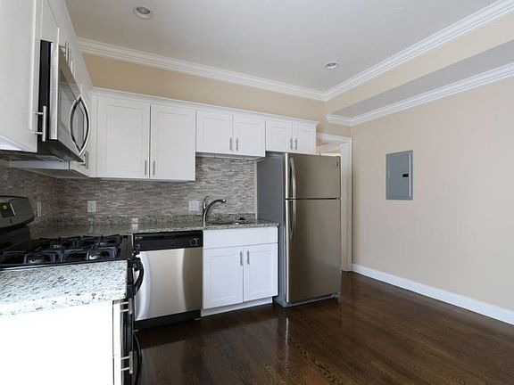 This massive 5 bed 2 bath is waiting for you! Gut renovated just one year ago, this apartment spreads over two levels, with two living rooms and huge bedrooms. Granite, stainless, dishwasher, rear deck, hardwoods, central air, beautiful moldings, laundry in unit, and tons of natural light round out this unit. Available for Sept 1. First and Security Required to Rent