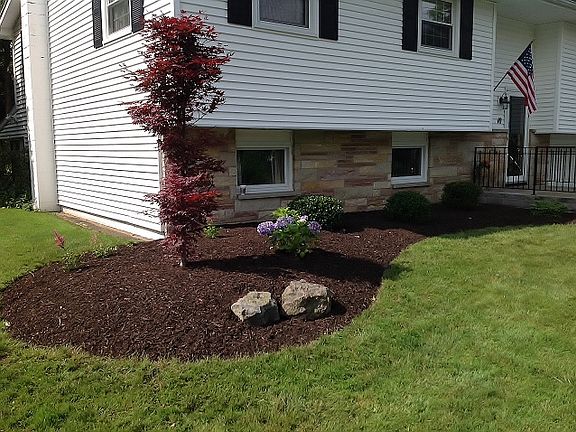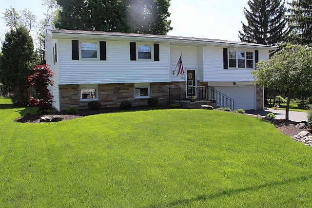 Enjoy a quiet cup of coffee in the 3 seasons room while taking in the tranquil atmosphere that surrounds you. With 4 beds/1 full bath and AC on the main floor with a beautiful kitchen finished with solid maple cherry stained cabinets and solid surface countertop. The lower level is complete with a family room that includes the comfort of a gas fireplace for those cold winter nights, a 1/2 bath, wet bar, and office. Wet bar and office easily convertible 5th&6th bedroom. Also, keep your car warm in the two car garage which opens up to a huge wood working space with added living space potential.