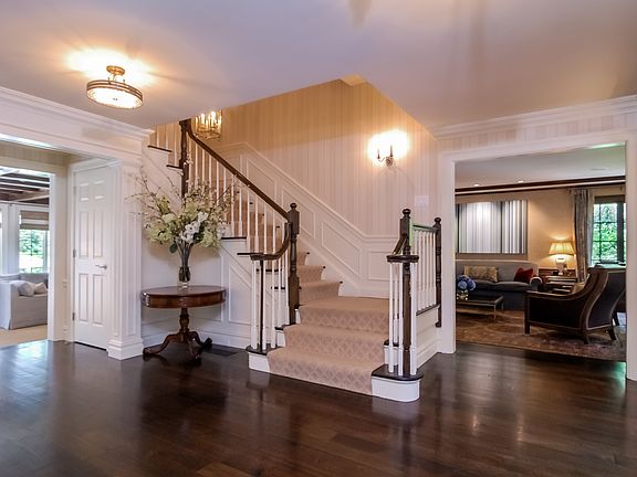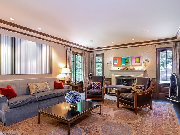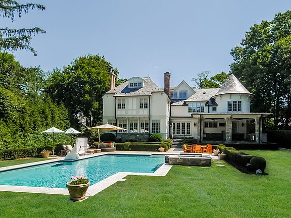 Normandy style home totally renovated by Alisberg Parker with new slate roof on prestigious street with exquisite grounds, outdoor entertaining space including pool, spa and stone terrace complete with kitchen. Large entry vestibule opens to spacious living room with prominent stone fireplace, dining room, powder room, sunken family room with fireplace, coffered ceiling with walls of glass opening to the patio, large eat-in chef's kitchen, butler's pantry: 4 dishwashers, 2 wine refrigerators, 2 wall ovens, cooktop, stone countertops throughout. Interior cabana with full bath, outfitted mudroom, door to 3 car garage outfitted by Garage Tek. Upstairs is a dream-like master bedroom with tray ceiling, large dressing room, stunning master bath, study with custom built-ins, turret ceiling! 4 bedrooms with own bathroom, playroom over garage. Third floor boasts finished space, storage. Lower level has an enviable exercise room, play area. Whole house generator, Crestron home automation system.